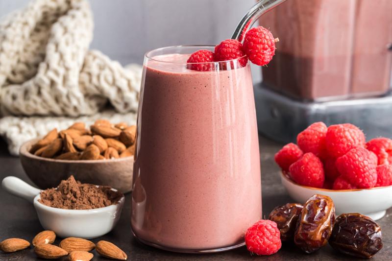 The Chocolate Raspberry Smoothie combines vitamin C-rich raspberries and antioxidant-loaded cacao for a delicious way to support adrenal health. With raw almonds and dates for steady energy and magnesium, this blend helps regulate stress hormones while offering a soothing, chocolatey treat your nervous system will appreciate.