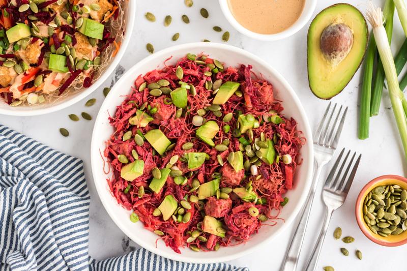 3. Kelp Salad with Baked Tempeh and Kimchi Miso Dressing